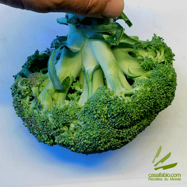 - Coupez en fleurette le brocoli… Pour aller plus vite voir le giff animé en fin d’article…