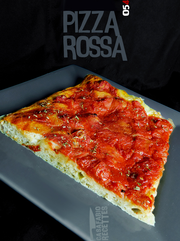 La pizza Rossa (rouge) est une spécialité Romaine que l’on retrouve dans toutes les bonnes boulangeries d’Italie. D’une garniture minimaliste, il vous suffira d’utiliser la meilleure pulpe de tomates possible… A la façon du sandwich chez nous, on l’achète à la part pour la déguster souvent dans la rue.