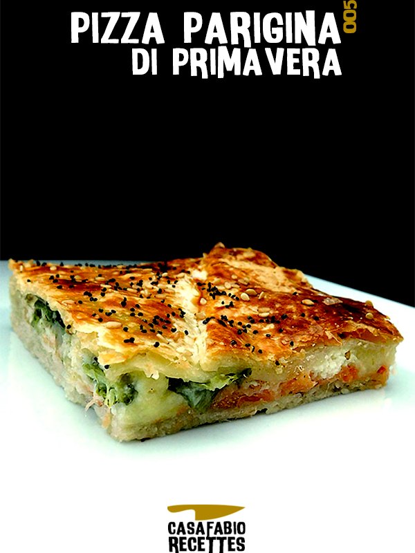 Si cette farce est une des plus anciennes que j’ai utilisé pour « bricoler » mes premiers feuilletés, la découverte il y a quelques années de la pizza Parigina (Parisienne, mais originaire de Naples, vous me suivez?) fût une révélation… Tout en gardant le croquant et la légèreté de pâte feuilletée, on ajoute un peu plus de consistance, sans exagérer, avec une pâte à pizza bien levée…