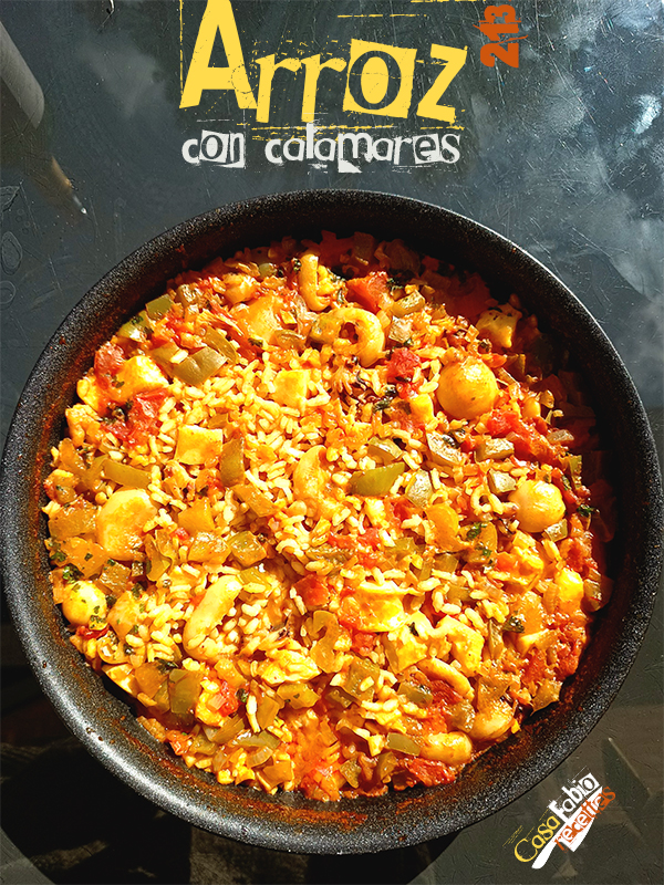 - Faites colorer à feu vif sans ajout de matière grasse les calamars dans une grande poêle ou une paellera quelques minutes. Retirez. Réservez