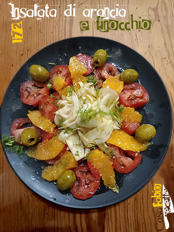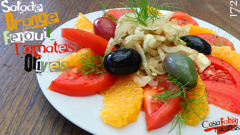 Une salade typiquement Sicilienne que je réalise sans (presque) changer les ingrédients.. On y fait macérer le fenouil dans du jus d’orange additionné d’un peu de vinaigre balsamique, pour d’une part l’attendrir et d’une autre pour obtenir une sauce pour la salade encore plus parfumée. A l’occasion, et quand c’est la saison comme ici, j’y ajoute de très bonnes tomates. Privilégiez les olives avec noyaux, au détail, en évitant celles en conserve ou en bocal.